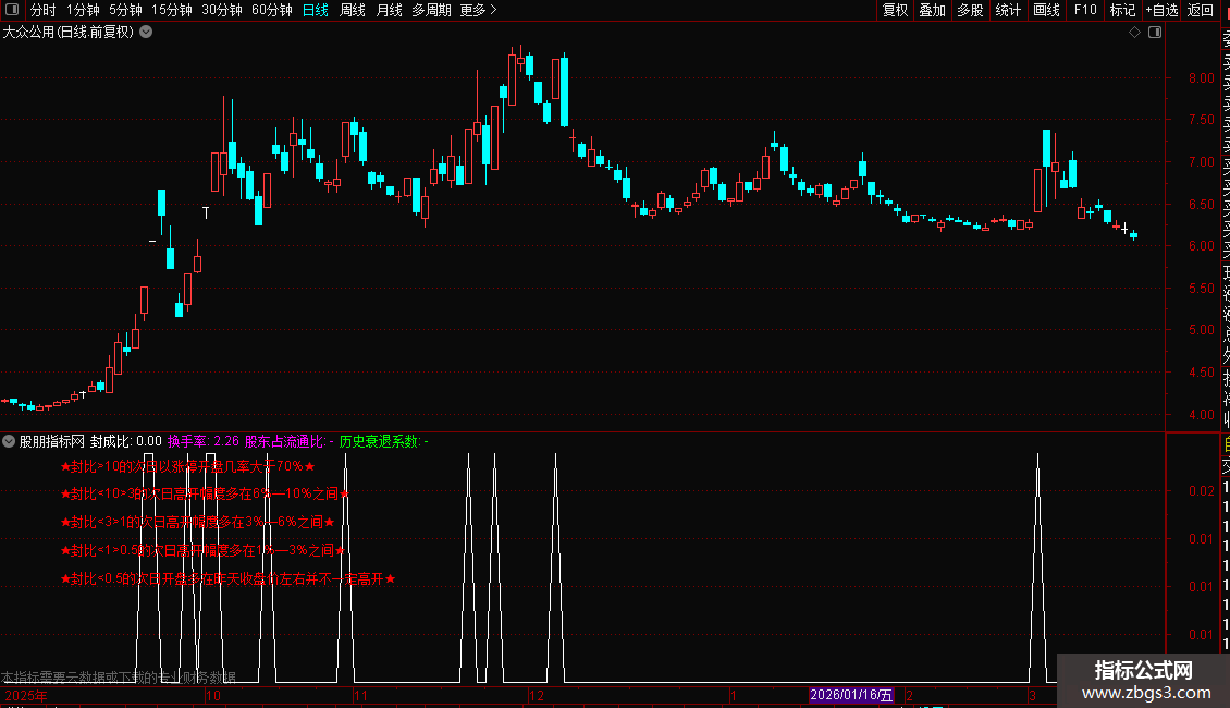DRAWTEXT_FIX(1,0.05,0.38,0,'★封比<1>0.5的次日高开幅度多在1%—3%之间★'),COLORRED;