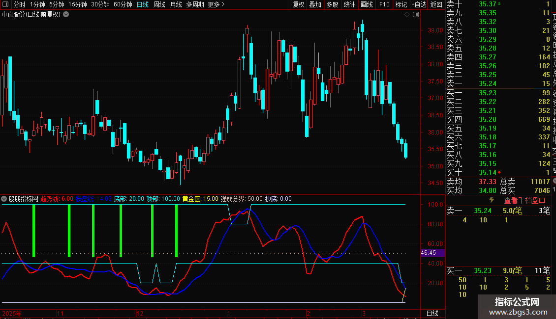 在弱势中宜抓多个信号出击的股票,如底部和抄底信号出现都为0,同时配合黄金区15和底部柱状线出击,成功的概率相当大。在强势中一般出现1、2个出击信号就可根据分时操盘抄作一把。