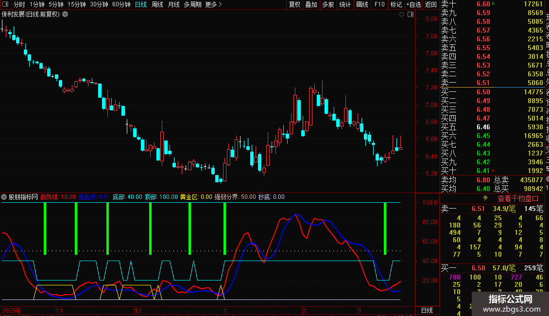 底部:IF((趋势线-VAR6<(-65)),20,40),COLORF0F000;