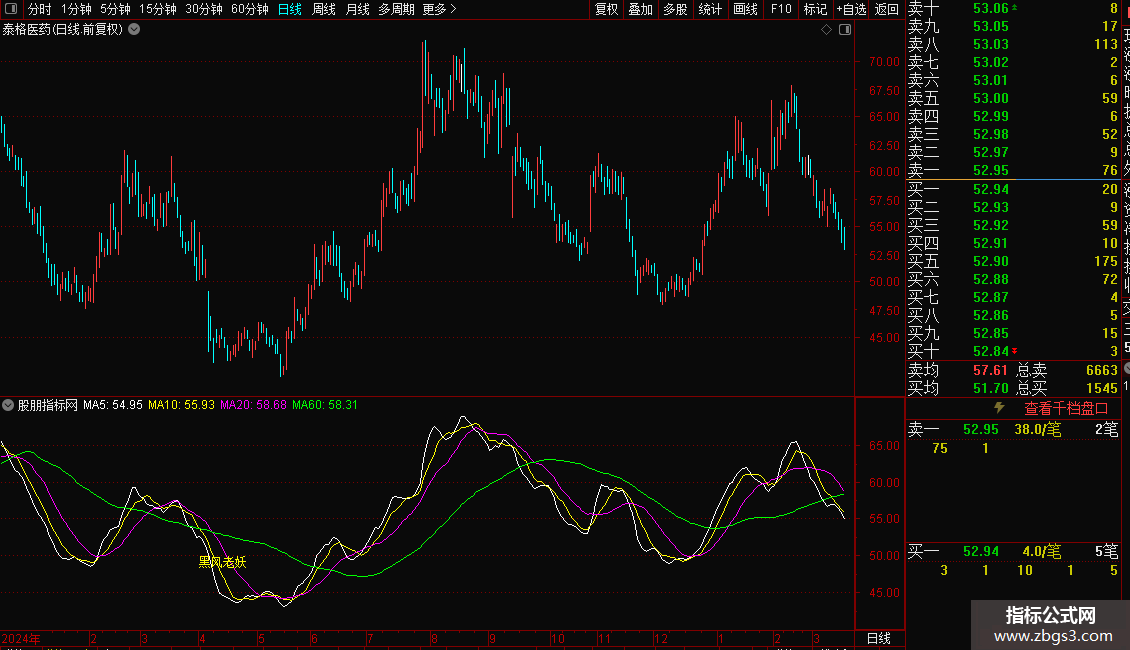 通达信黑风老妖主图指标 设计思想急速下跌中求V型反转起点