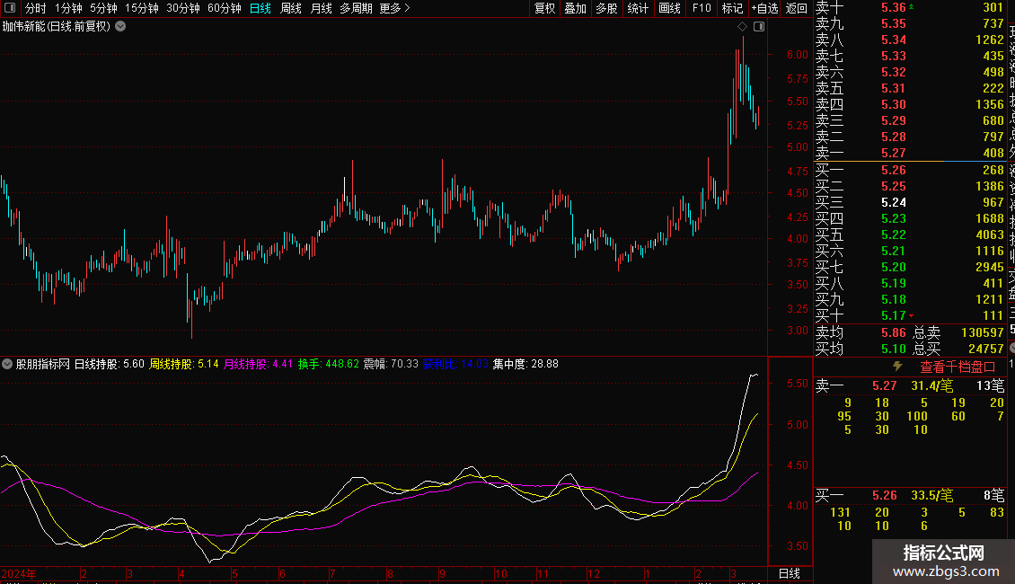 牛股:=日线持股>1 AND 换手>100 AND 获利比>85 AND 集中度<30 AND 强势=1 AND 出现涨停 AND 三日涨幅<20 AND 二十涨幅<50;