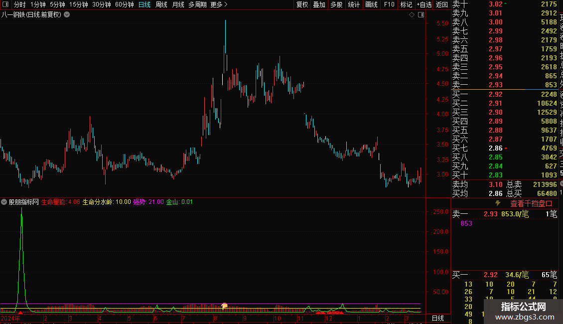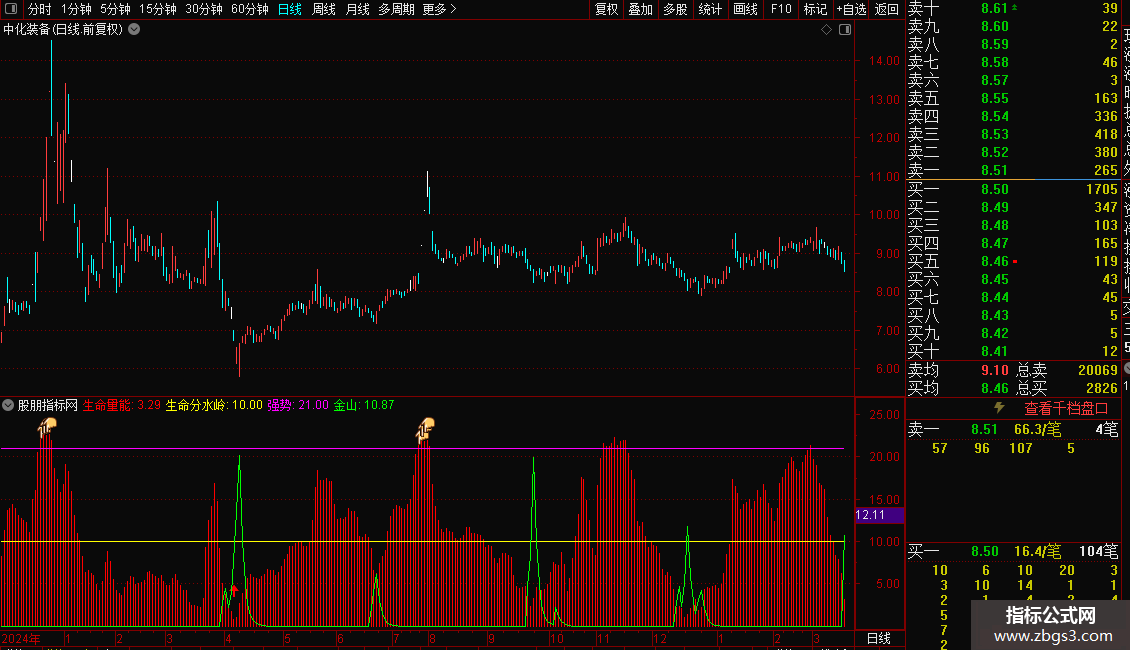 通达信监测大盘顶 生命量能副图指标 源码 通达信 附图