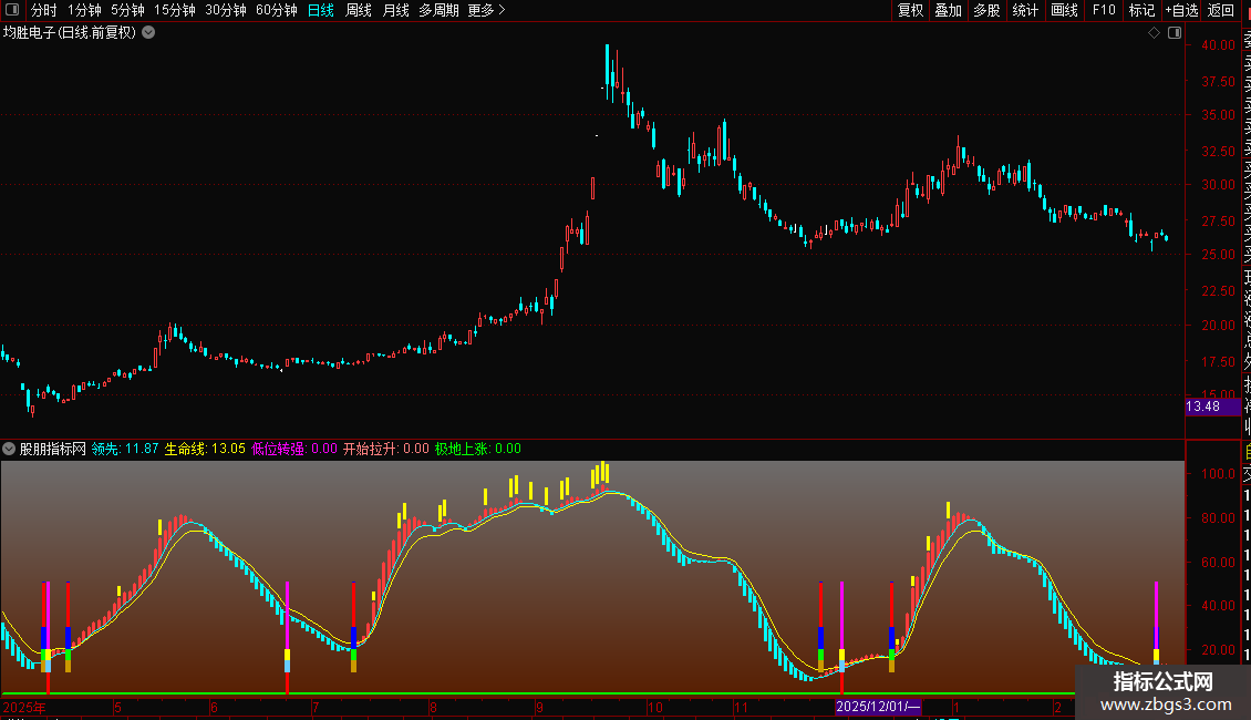 低位转强:IF(CROSS(X_37,X_38),50,0),STICK,COLORMAGENTA,LINETHICK2;