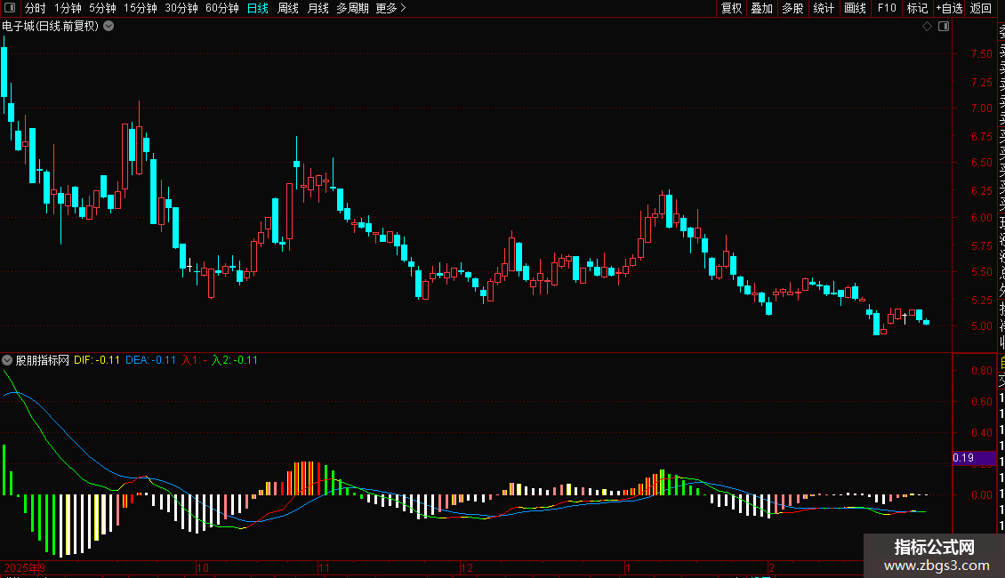 STICKLINE(落,0,MACD,1,0),COLORWHITE;
