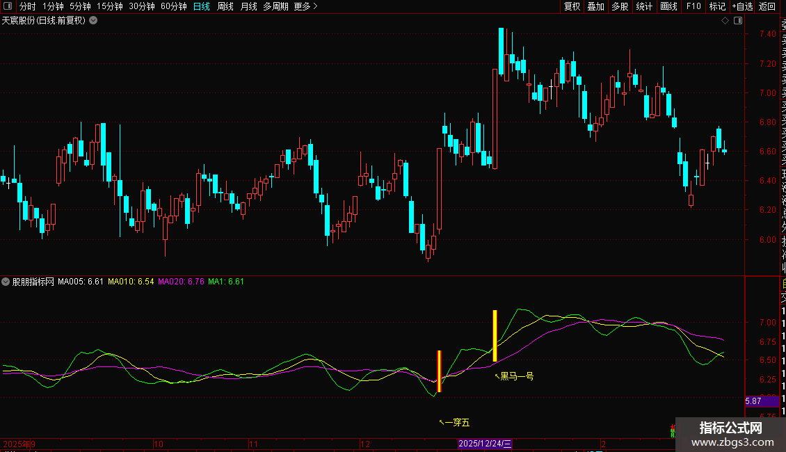 自用主图看盘指标: 大道至简,【一穿五+黑马起爆】道主图(指标 主图 通达信 贴图)无加密 无未来。