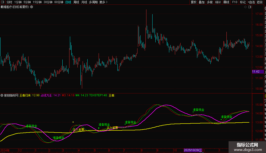 王者:DRAWTEXT(王,王者归来+0.3,'买入股票'),COLORYELLOW;