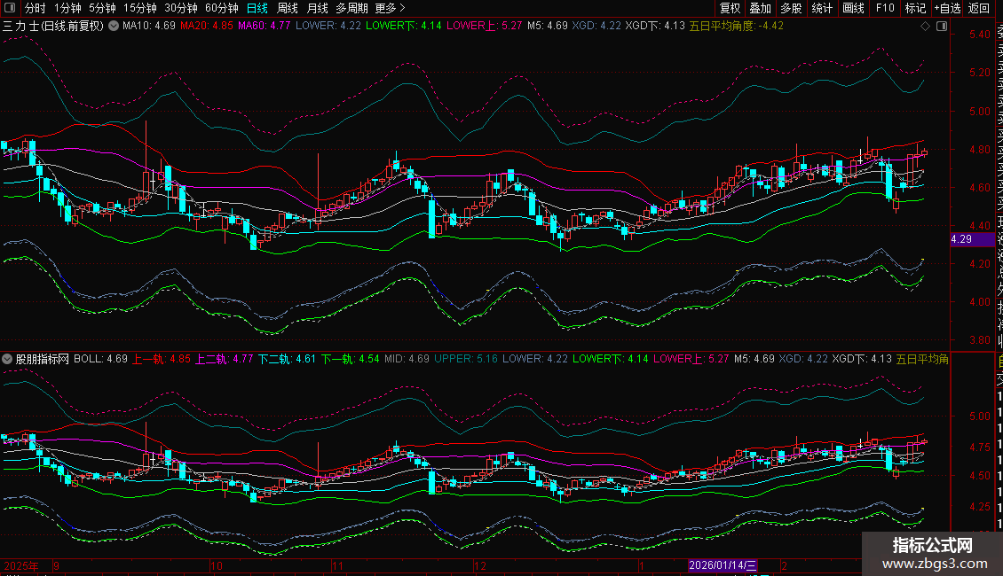 上二轨:BOLL+STD(CLOSE,20),COLORMAGENTA;