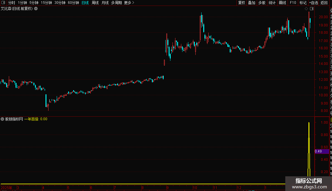一年百倍:X_1 AND X_2 AND X_6 AND X_7 AND REF(CLOSE*1.11,1)<CLOSE,COLORYELLOW,LINETHICK2;