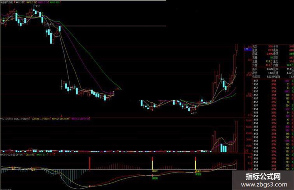 IF(DIF>=DEA,DIF,DRAWNULL),COLORRED;{变色};低位金叉:=CROSS(DIF,DEA) AND DIF<0; DRAWICON(低位金叉,DEA*0.97,1); STICKLINE(低位金叉,0,0.2,1,0)COLORRED; 金叉:= CROSS(DIF,DEA) AND DIF>0; DRAWICON(金叉,DEA*0.97,1); DRAWTEXT(金叉,DEA, '金叉')COLORYELLOW;