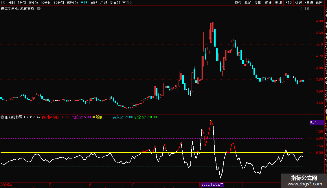 10:绝对风险区。正所谓高处不胜寒,当CYS值大于10时,要注意风险了(加速冲刺的个股可略过,但要注意30分钟、60分钟是否背离)。