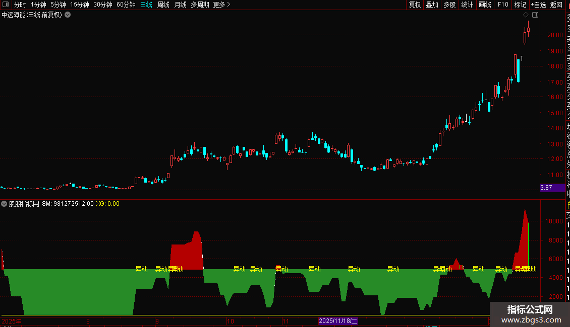 DRAWTEXT(XG=1,CONST(MA(SM,20)),'异动'),COLORYELLOW;