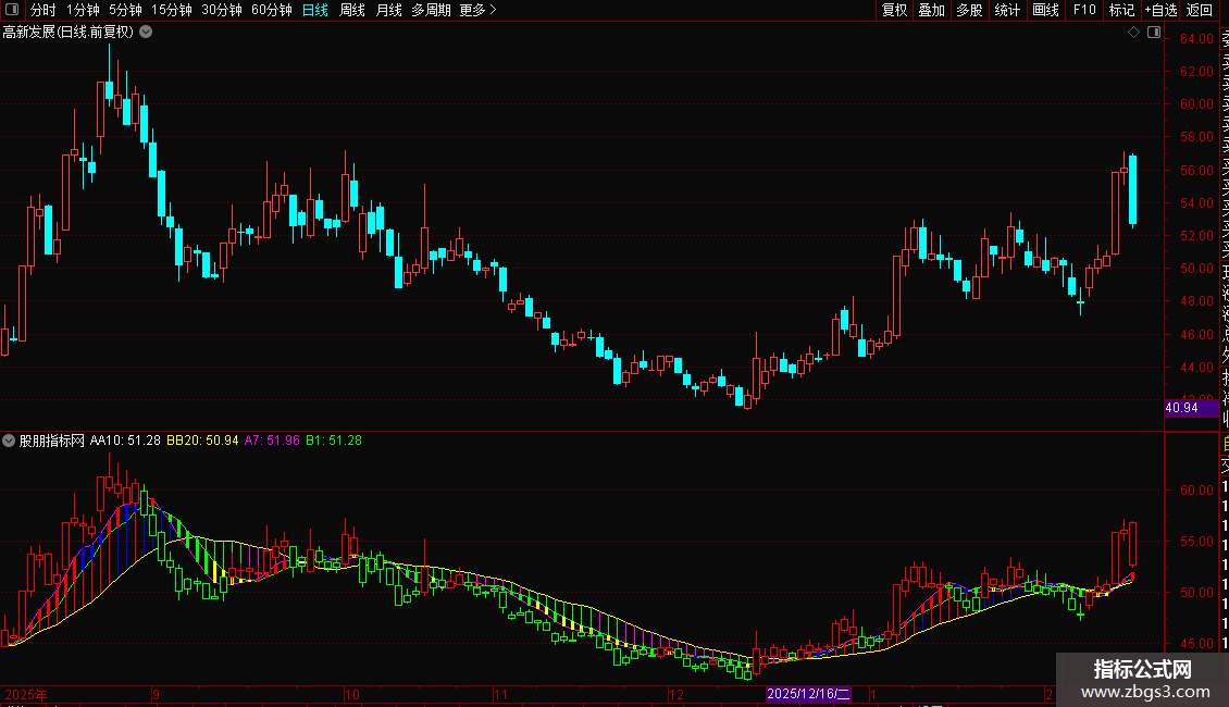 3.股价站在30周均线上处于多头位置,量线呈现三线开花的态势;