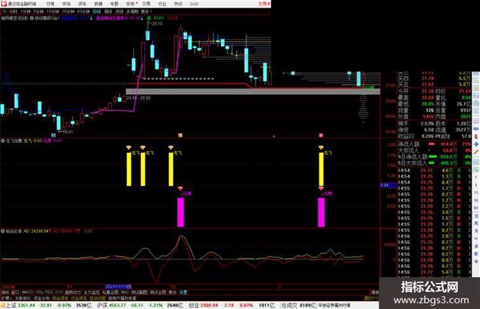 离合:=趋势线-((C-趋势线)*C-趋势线)/趋势线,LINETHICK1,COLORBLUE,DOTLINE;
