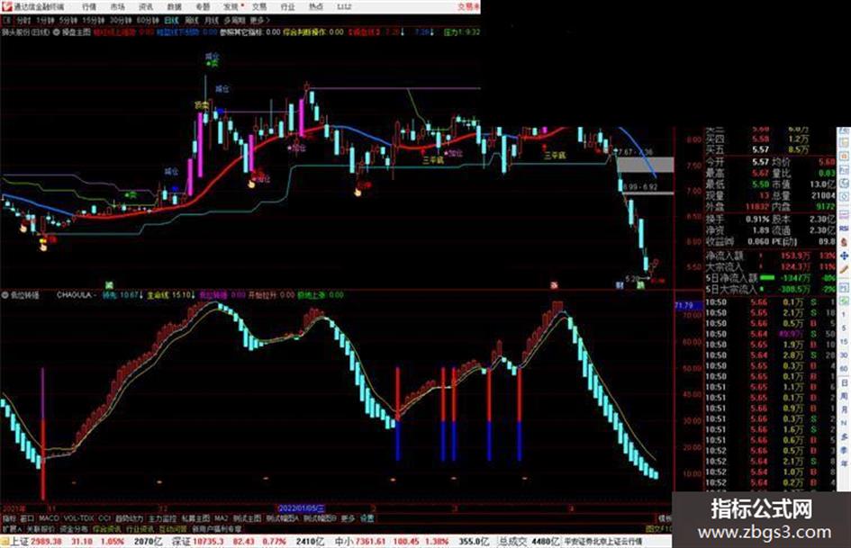 分水岭:=IF(MA(CLOSE,12)<B,B,MA(CLOSE,12));操作线:=分水岭-(EMA(C,3)-分水岭);