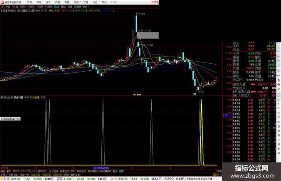 引力抄底:CROSS(首峰线,引力1) AND CROSS(首峰线,引力2) AND CROSS(首峰线,引力3) AND CROSS(首峰线,引力4) AND CROSS(首峰线,引力5),LINETHICK3;