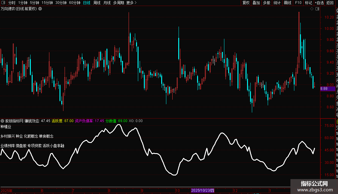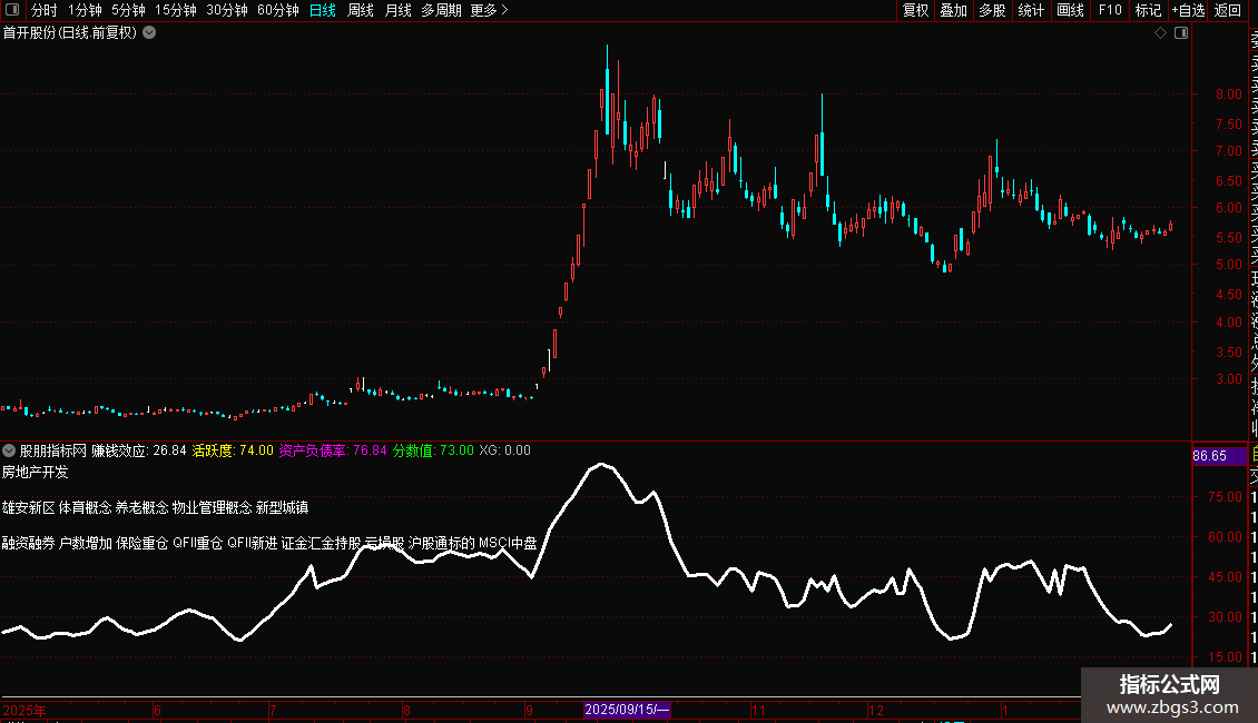 2. 自定义评分系统:通过“赚钱效应”、“活跃度”及多项财务指标(资产负债率、利润同比、收入同比)计算一个综合“分数值”,用于评估股票基本面与技术面状态。