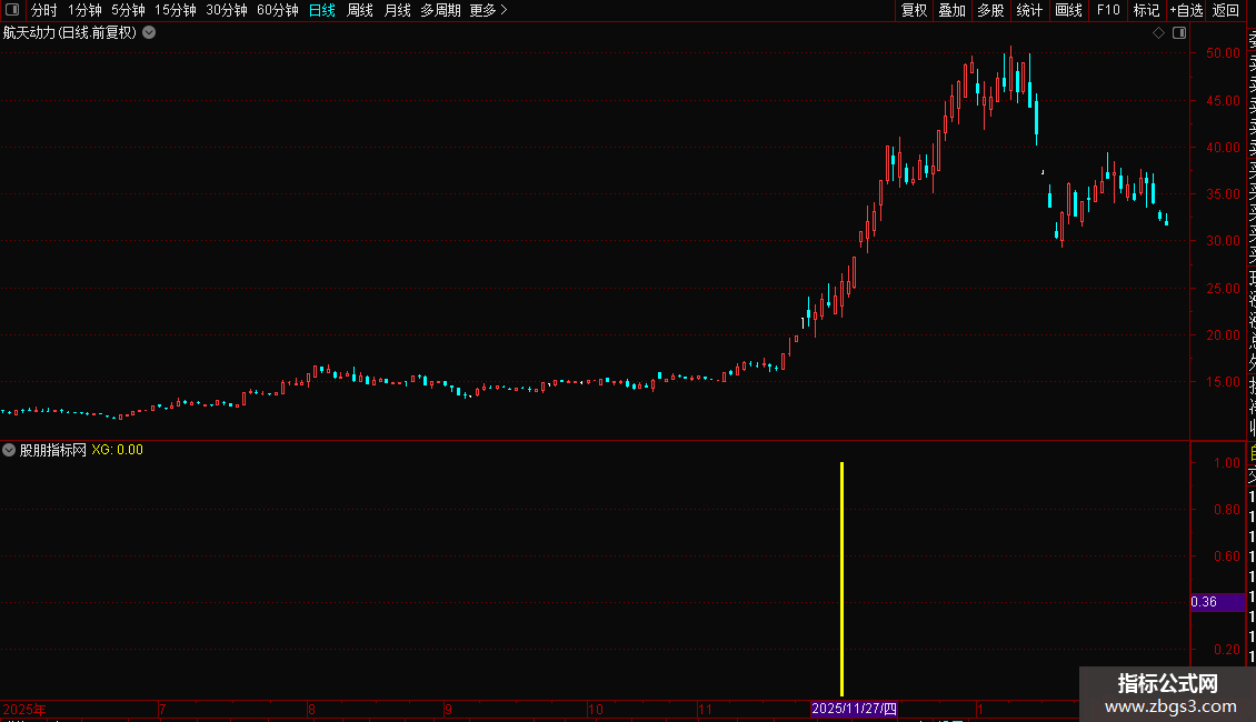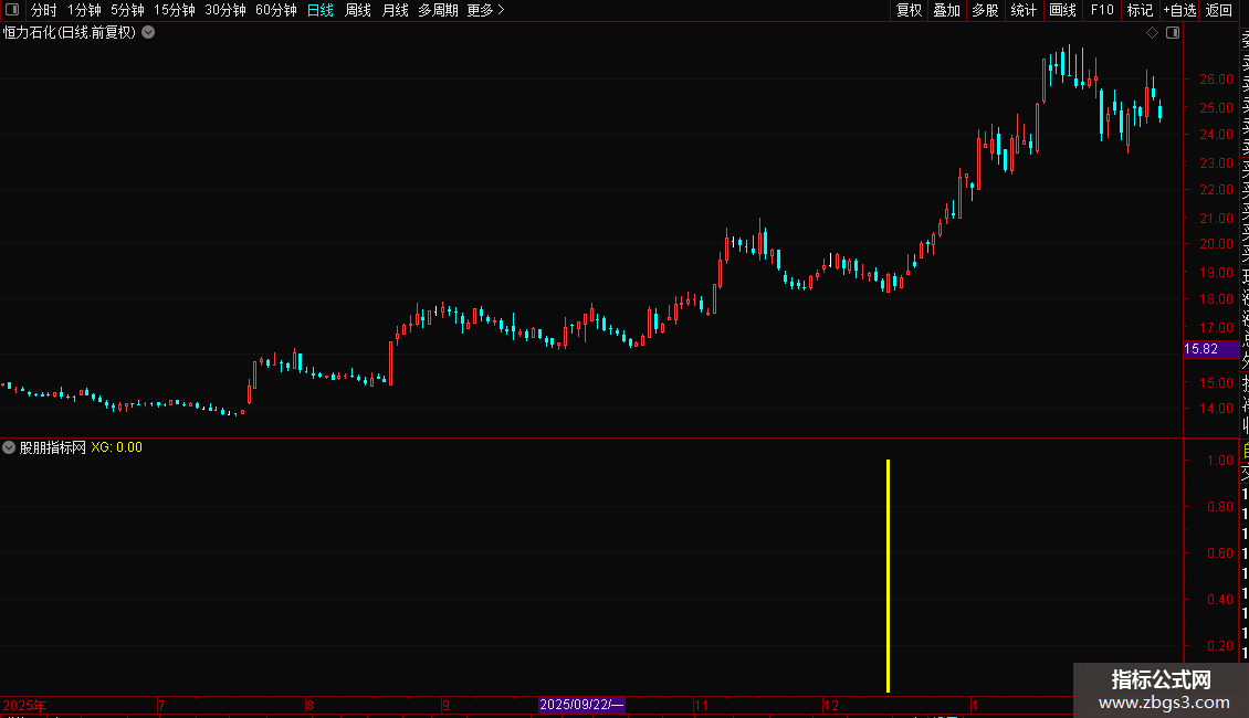 4. 信号出现时,在副图或K线图上标记黄色柱状线。