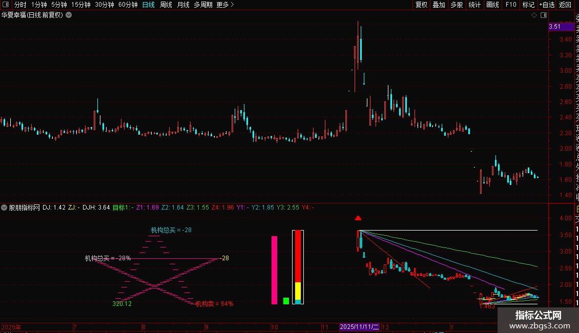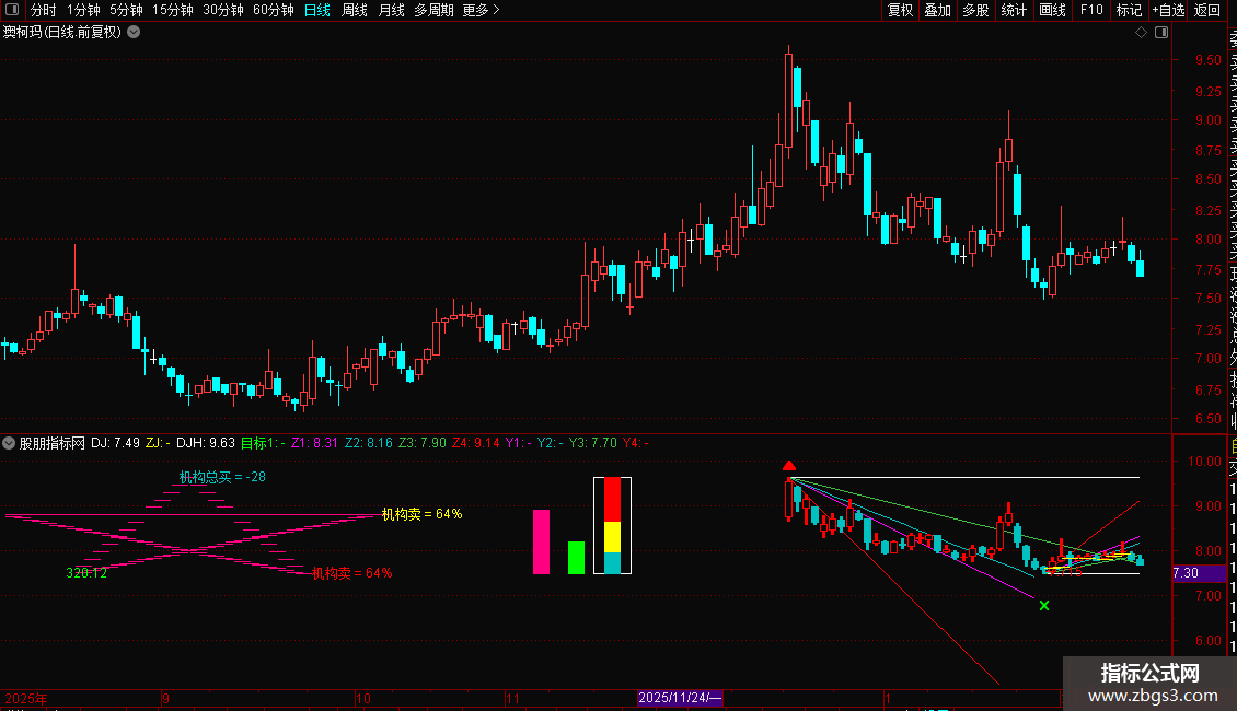 目标1:IF((CLOSE > (DJ * 1.5)),(DJ * 2),DRAWNULL);
