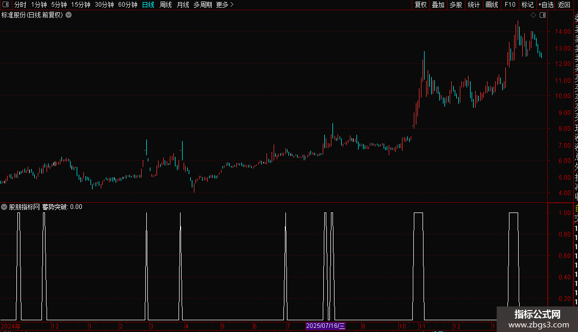 公式的核心是最后的“蓄势突破”条件。它要求股票同时满足以下多个维度的技术特征: