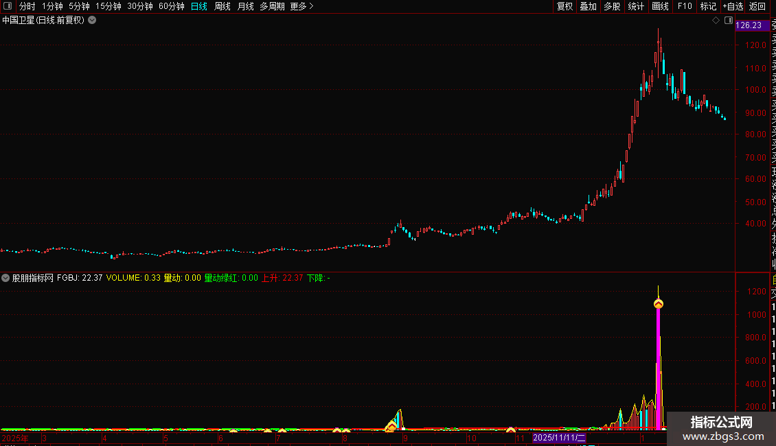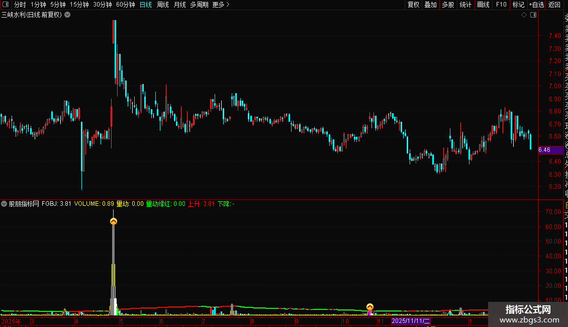 量动:IF(VOLUME>FGBJ,VOLUME*1.1,0);