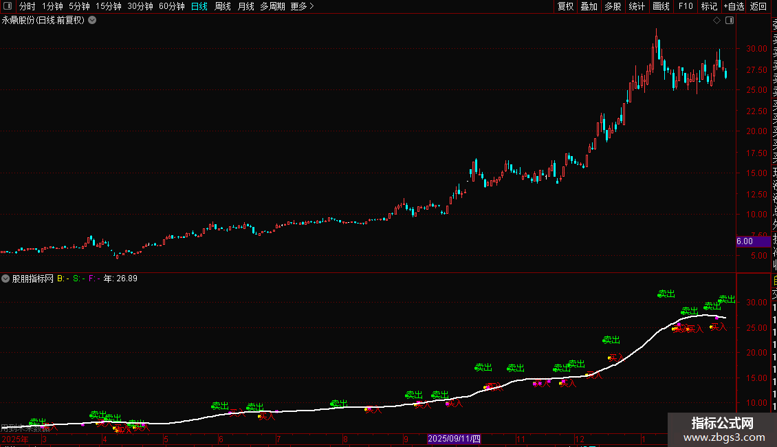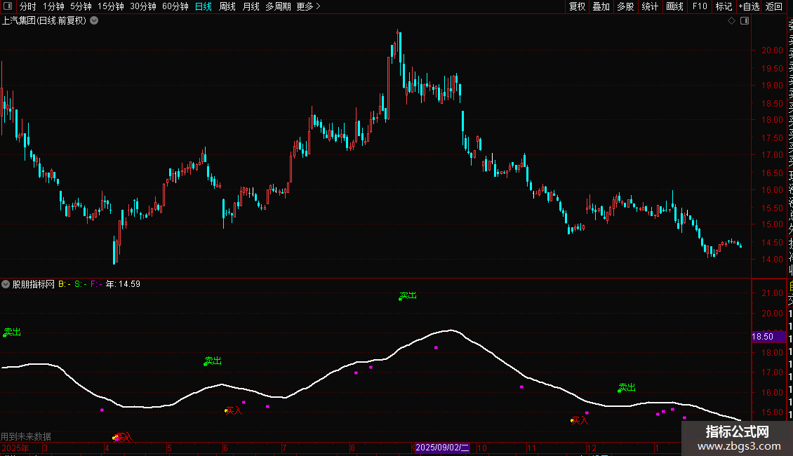 指标在图表上直接显示“买入”、“卖出”标记和交叉点,直观易用。