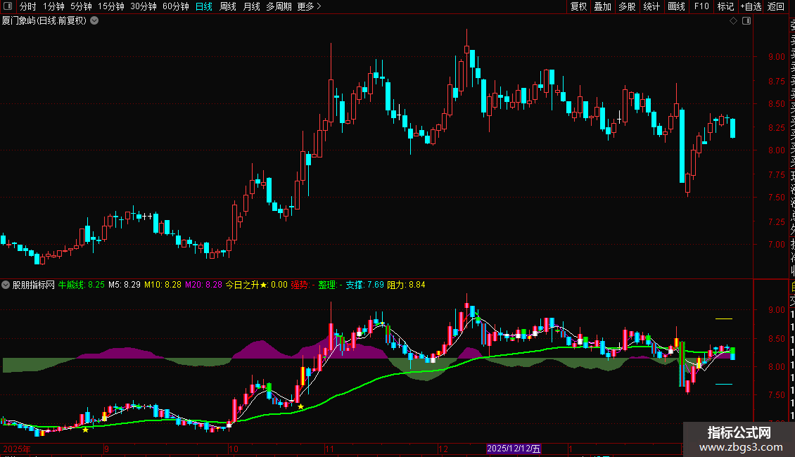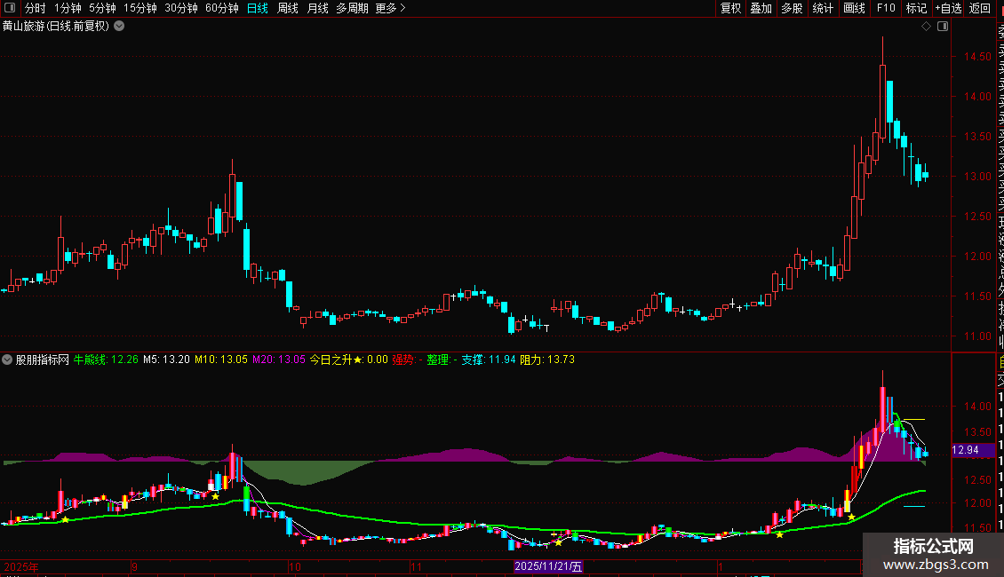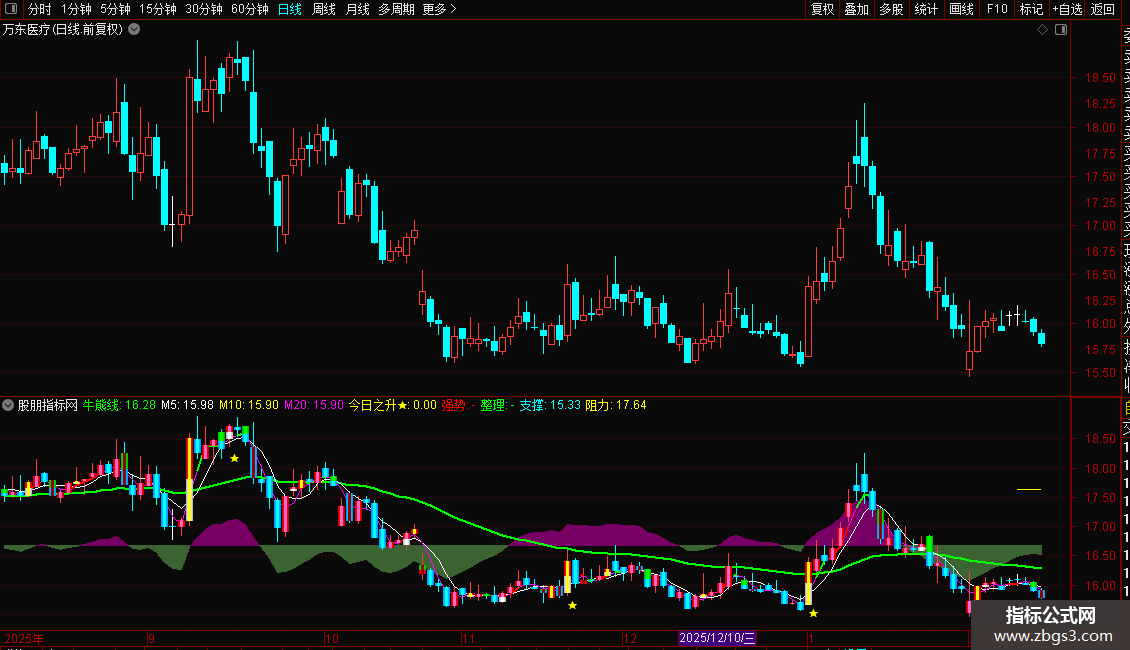 2、绿色牛熊线之上中线看涨,之下看空,清晰明了。