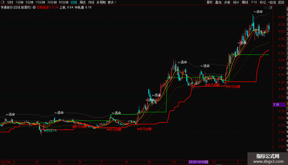 设置了“逃遁”、“逃命”等预警信号,提示潜在的风险或卖出机会。