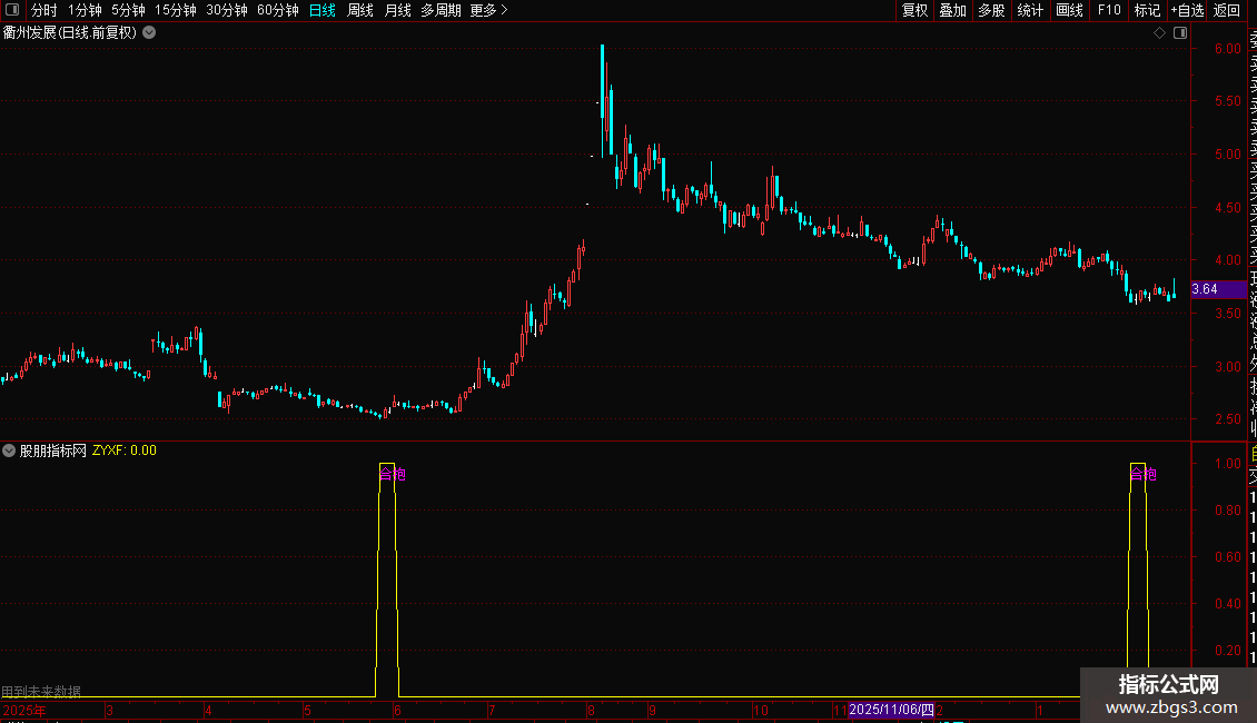 “合抱”信号:当满足一系列复杂的趋势、位置、量能和形态条件时,在副图标注“合抱”文字提示。该信号旨在提示一个综合性的潜在关注点。