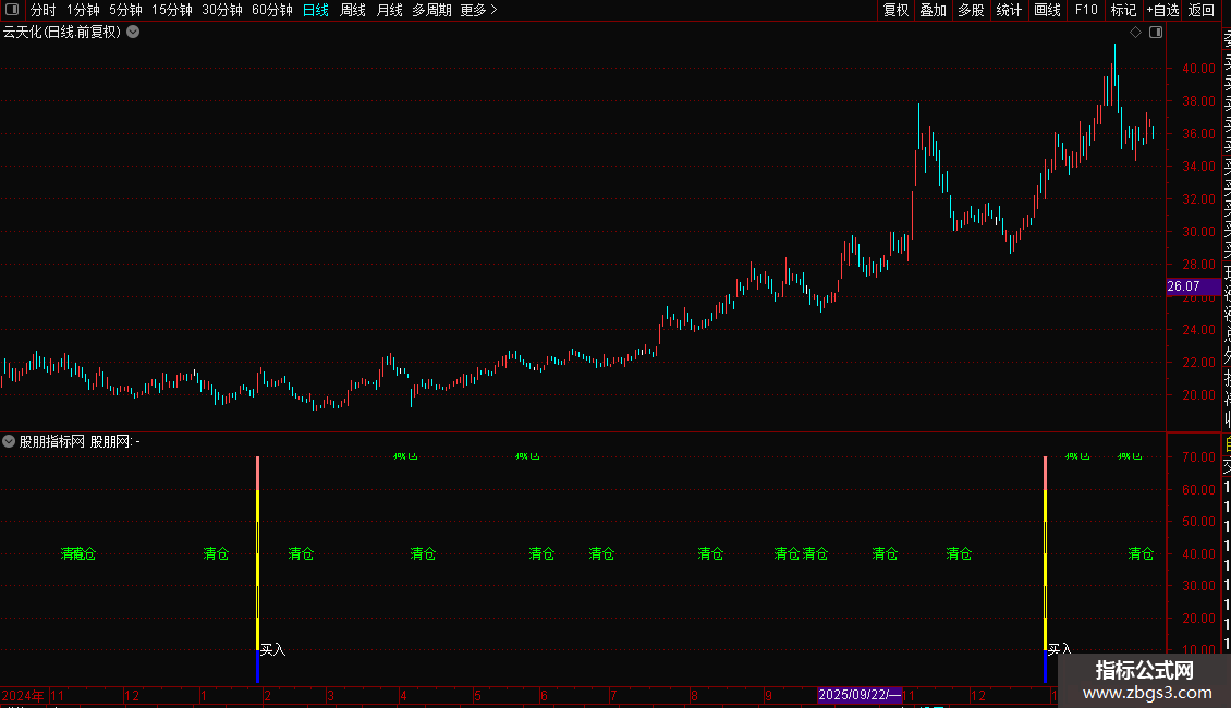 DRAWTEXT(CROSS(40,做多线),40,'清仓'),COLORGREEN;