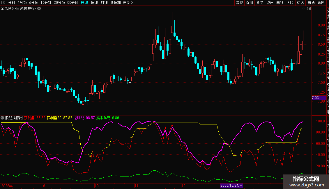 成本乖离:计算股价相对于市场平均成本的偏离程度,用于判断超买超卖。