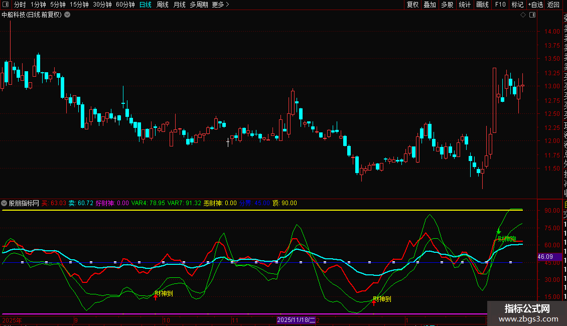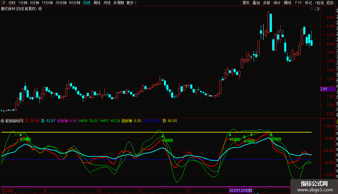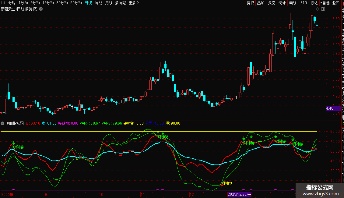 - 好财神:VAR2下穿80时提示卖出机会,标记“财神跑”。