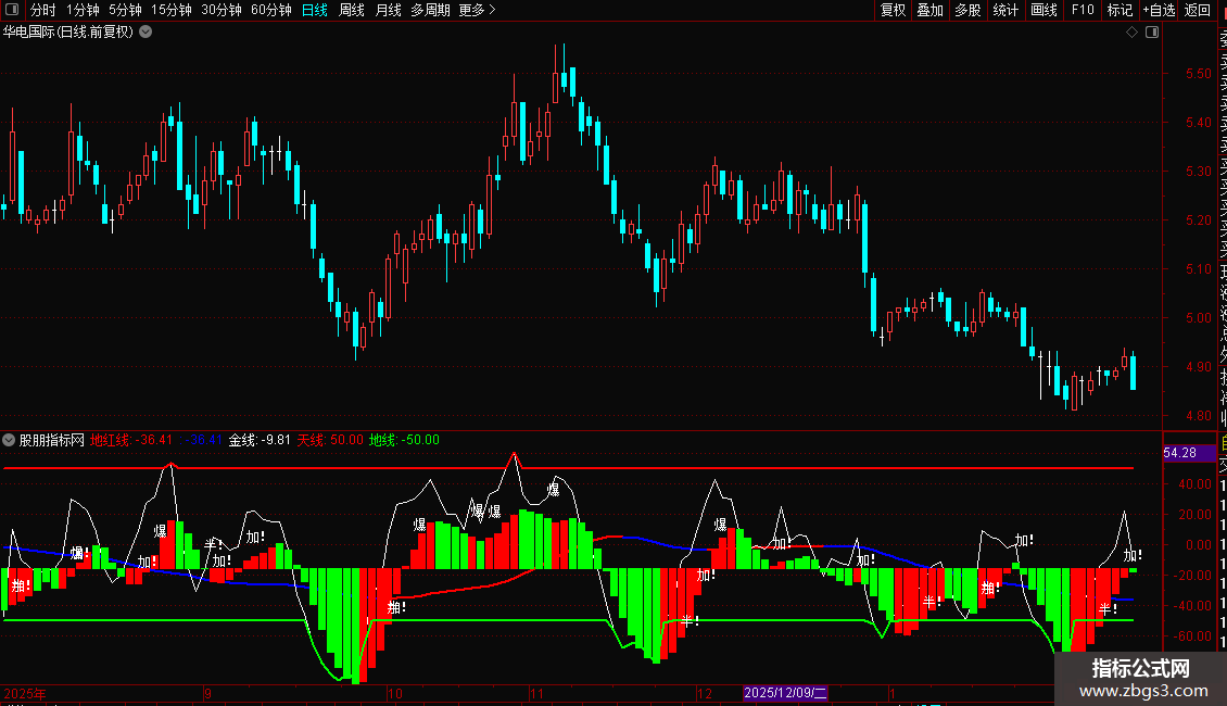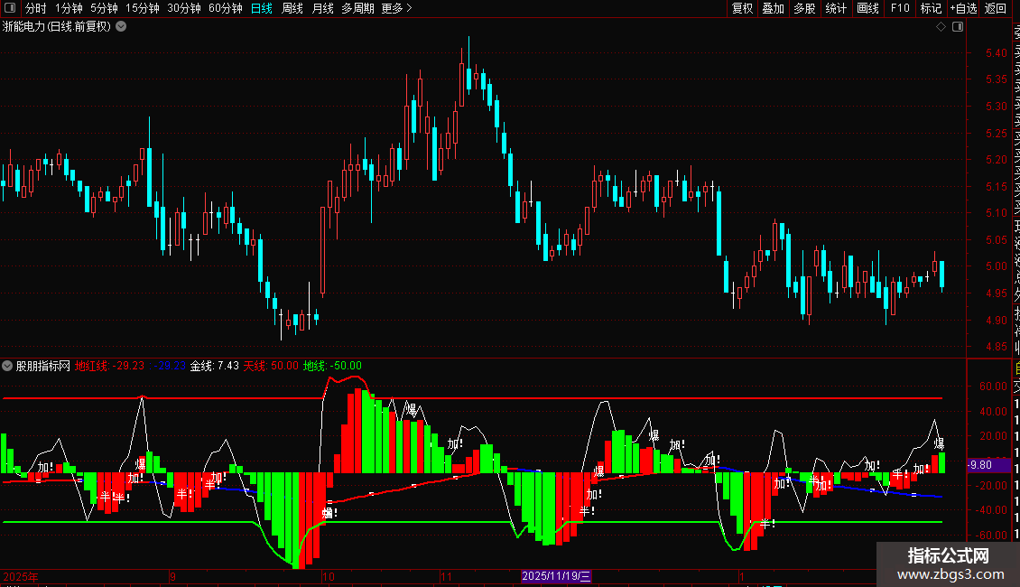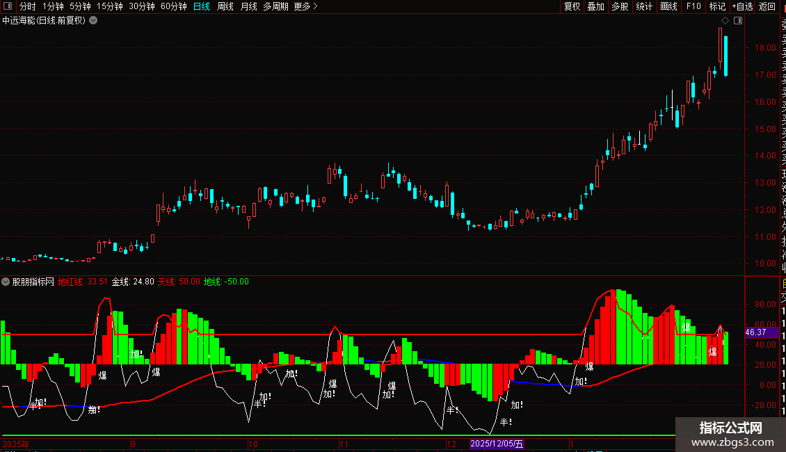 4. 文字提示:当金线向上穿越关键参考线(爆发线、起步线、抄底线)时,会显示“爆”、“加!”、“半!”等文字进行预警。