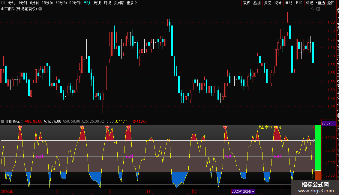 4. 右侧附有柱状图直观展示当前“攻击度”(即相对位置百分比)。