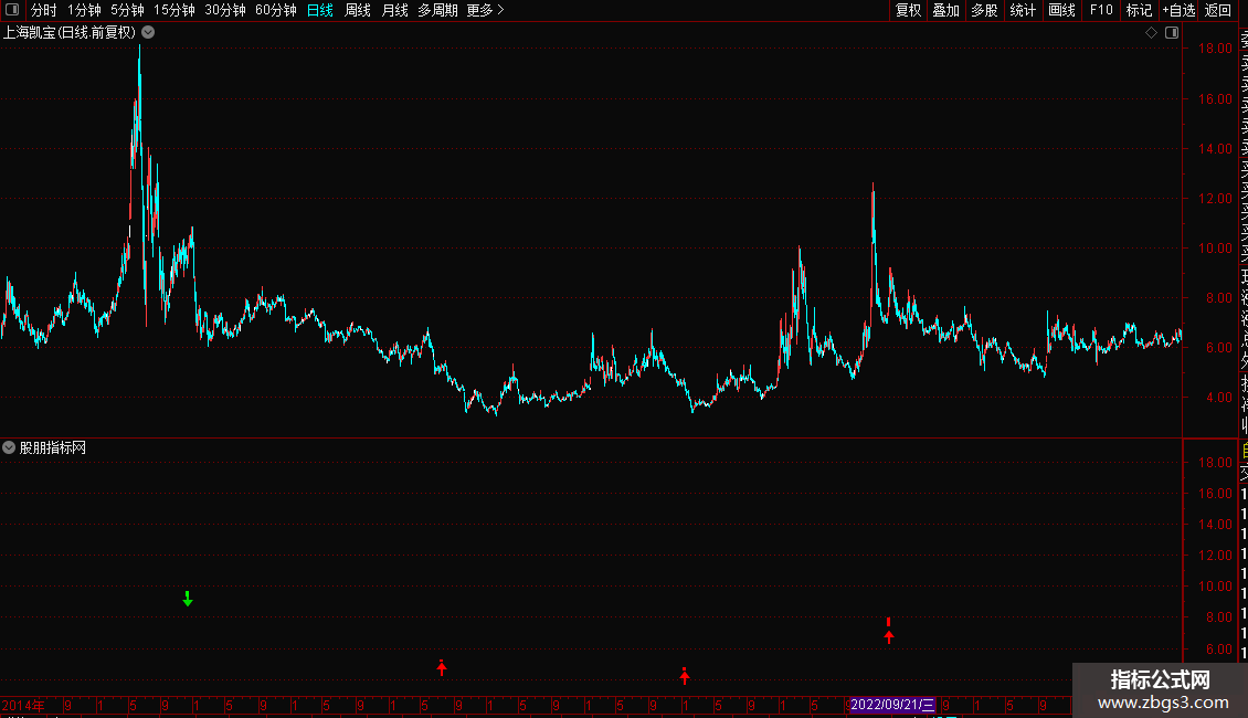 5. 当出现“全空头排列”时,在K线最高价位置标记卖出图标,并将该K线用绿色柱状高亮显示。