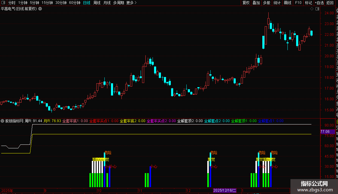 这是一个在副图显示的综合择时指标。它通过股价与筹码成本的相对位置,结合RSI状态,提示潜在的趋势转折点。使用者应结合其他分析方法对信号进行过滤,并注意指标基于历史成本分布计算,在快速涨跌行情中可能滞后。