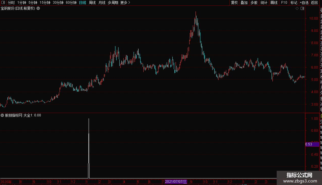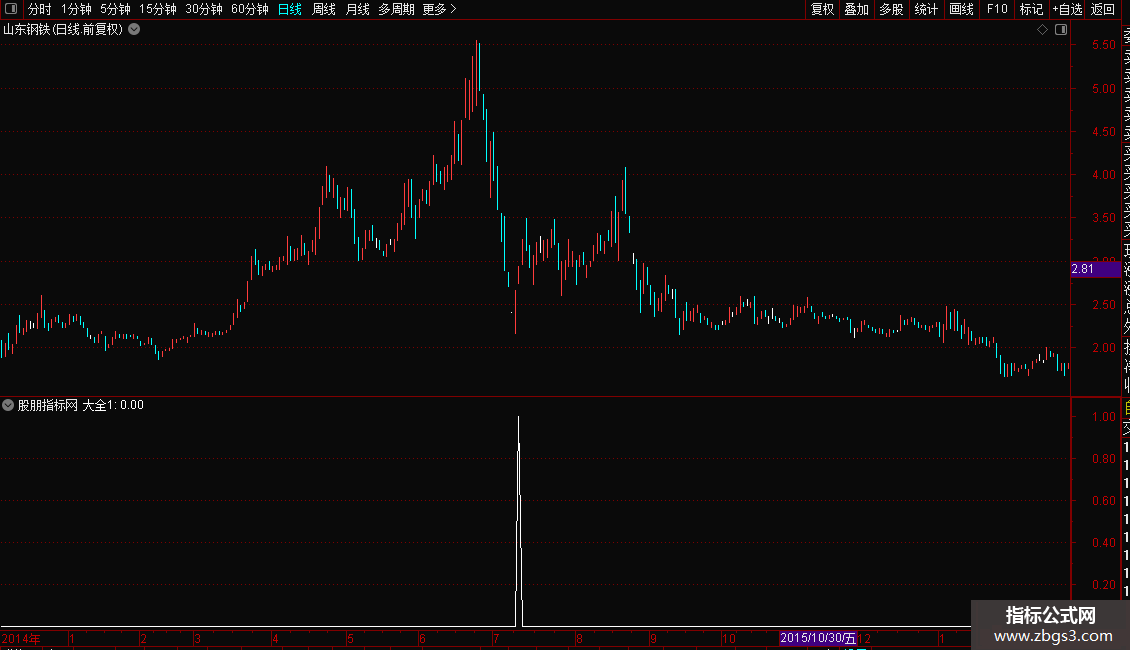 1. 当“大全1”输出信号(通常为1或向上箭头)时,表示出现了指标定义的买入形态。