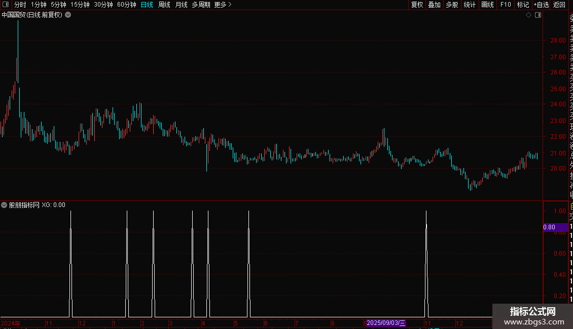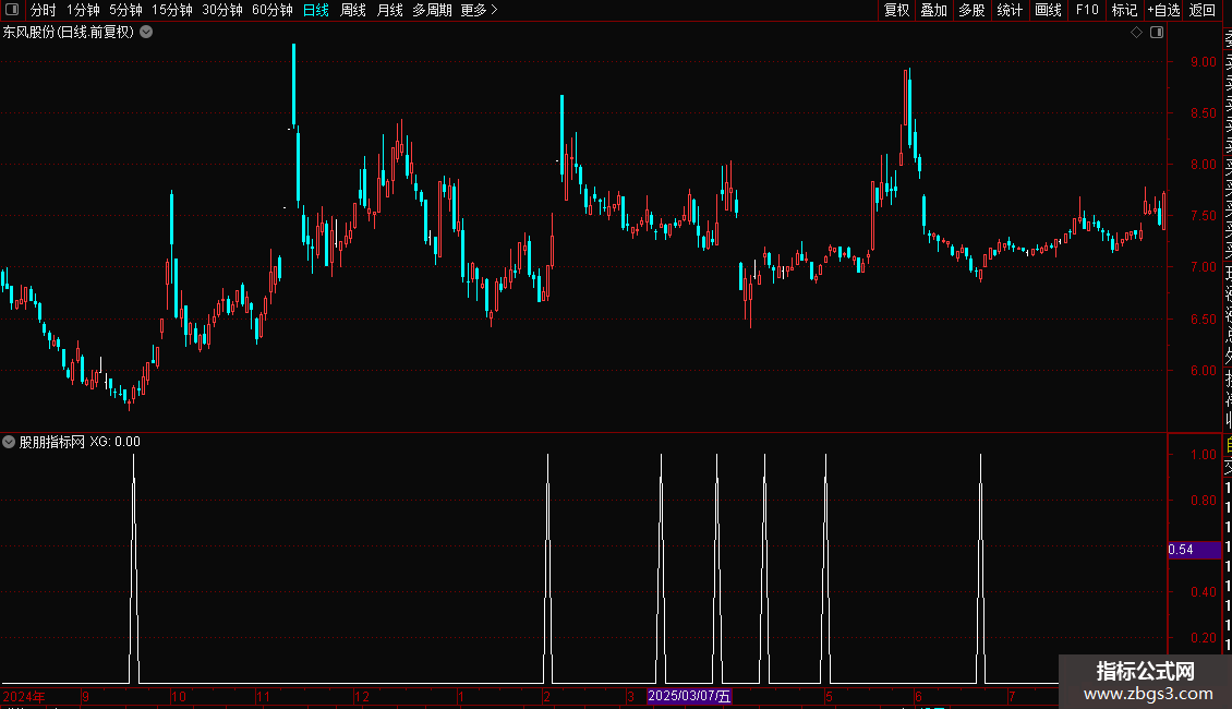 当公式输出信号(XG)为“1”时,表示当前股票满足了指标设定的买入条件组合。