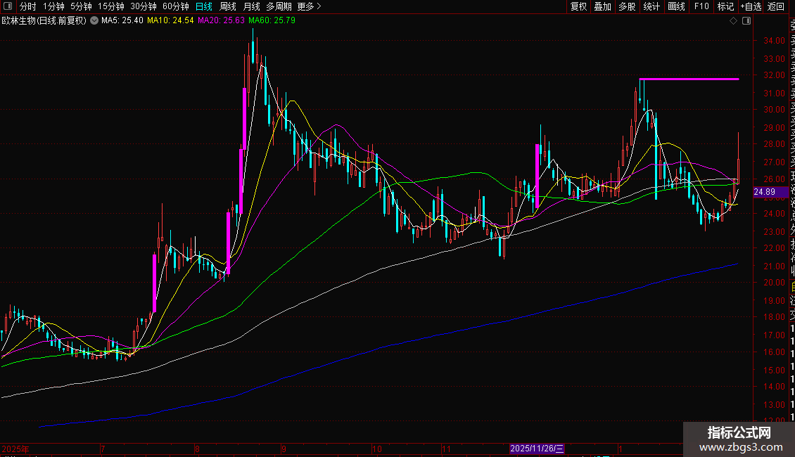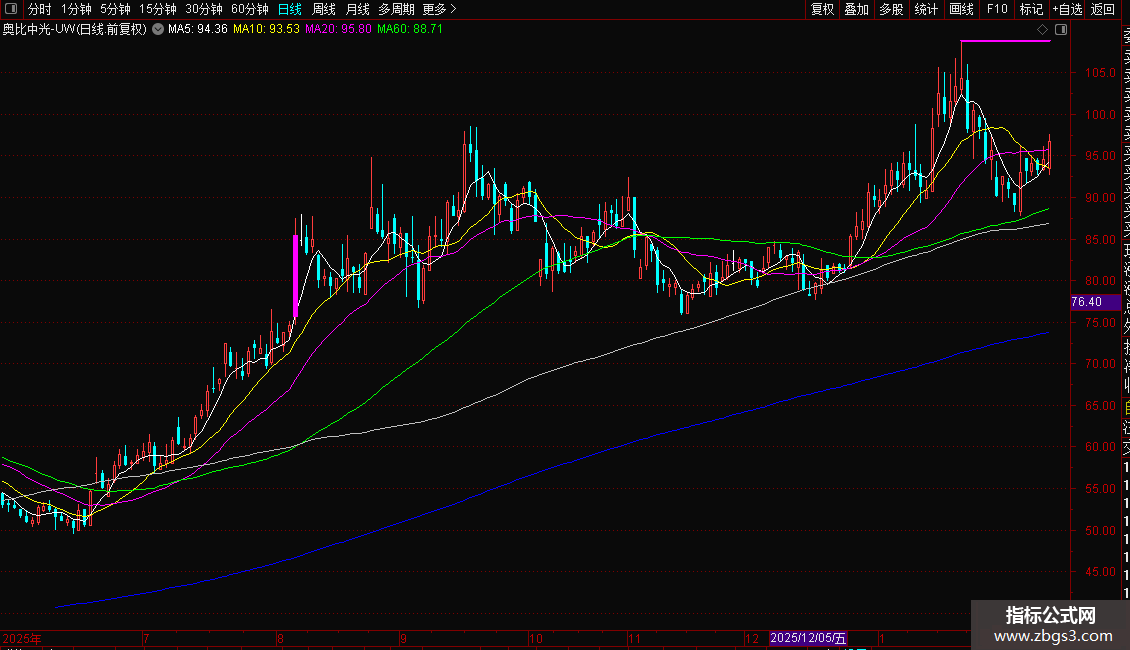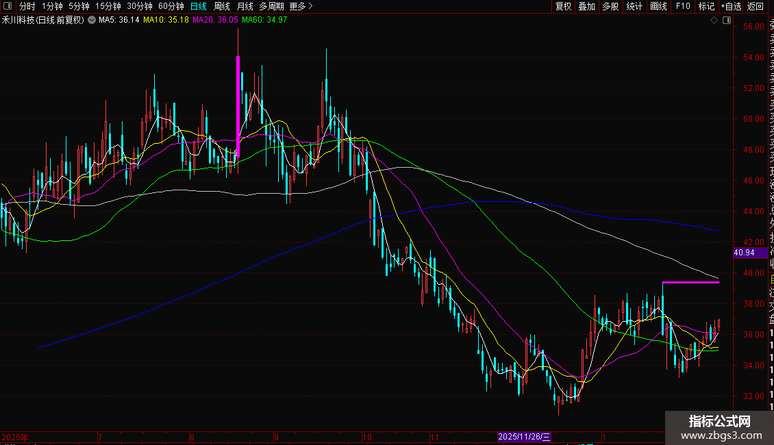 3. 涨停标识:在K线图上用洋红色柱状线醒目地标记出当日涨幅超过9.5%的涨停板。