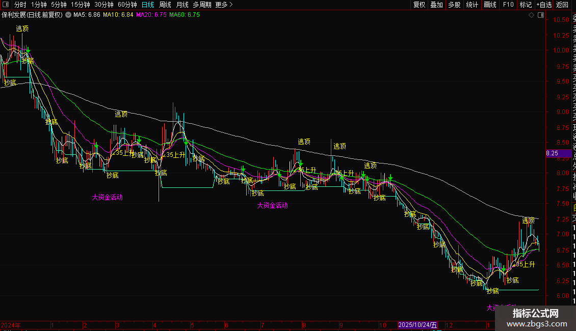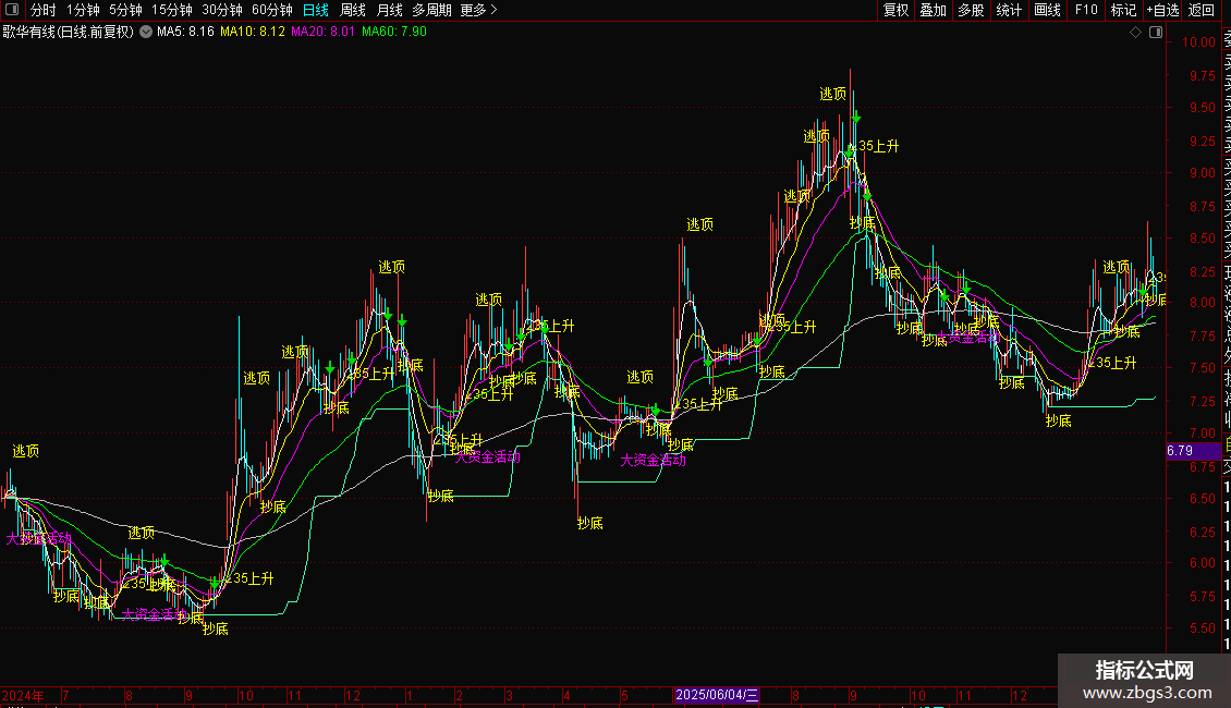 用法:观察短期线、持股线、生命线之间的多头排列(短期在上)或空头排列(短期在下),以及股价与各条均线的相对位置,判断趋势强弱和支撑压力。
