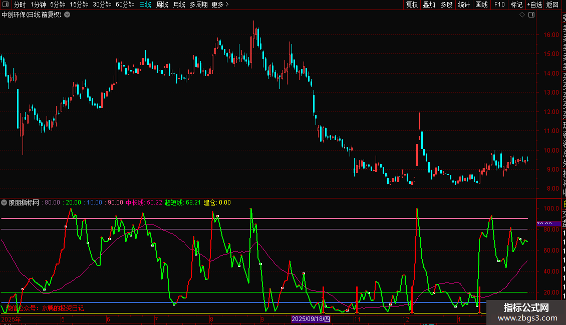 建仓/底部信号:当指标处于极低位置(如中长线<15)后,出现超短线上穿中长线的“低位金叉”等组合条件时触发。