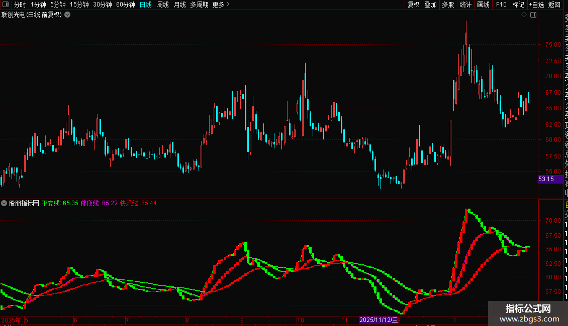 STICKLINE(快乐线<REF(快乐线,1),快乐线,REF(快乐线,1),3,0),COLOR00FF00;