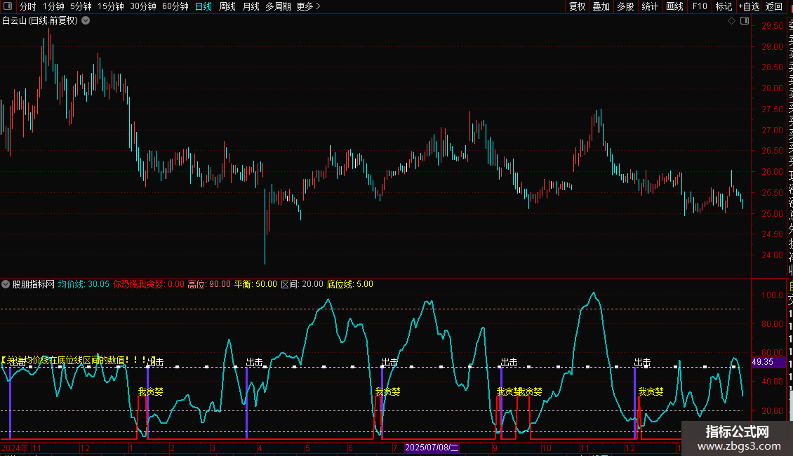 你恐慌我贪婪:IF(均价线<=8,30,0),COLORRED,LINETHICK2;