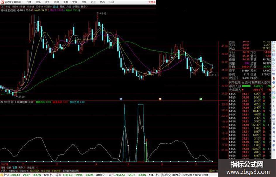 通达信顶天立地,经典指标,瞄准底部 果断买入 副图+选股
