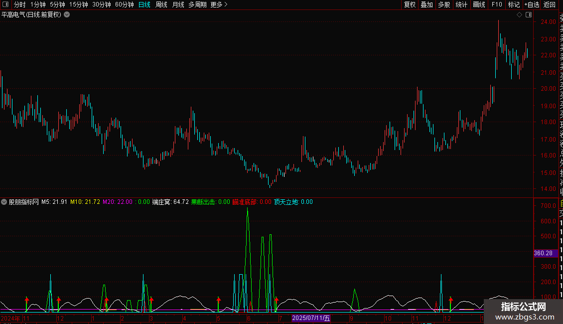 果断出击:IF(CROSS(端庄窝,0.01),100,0),STICK,COLORGREEN,LINETHICK2;