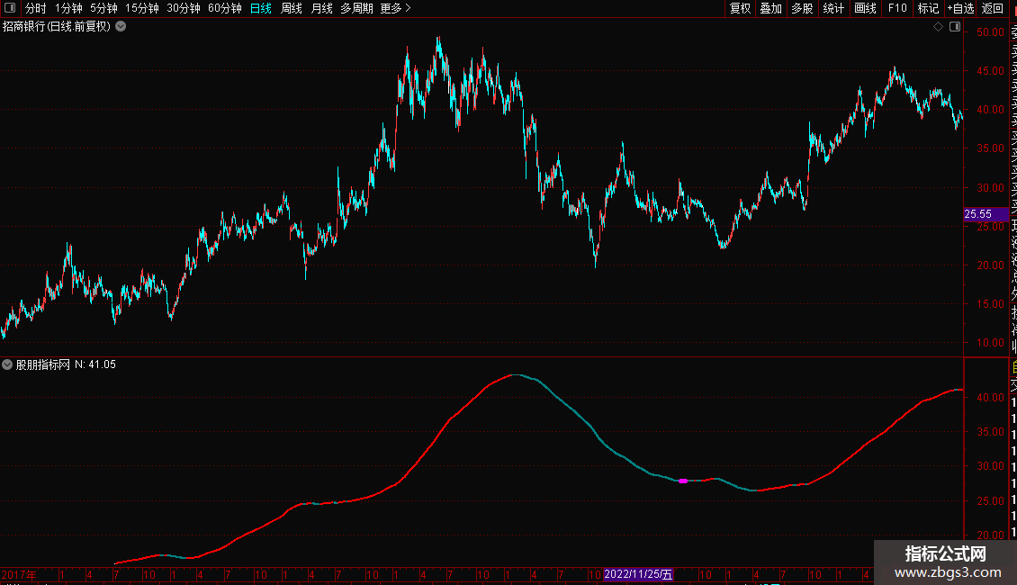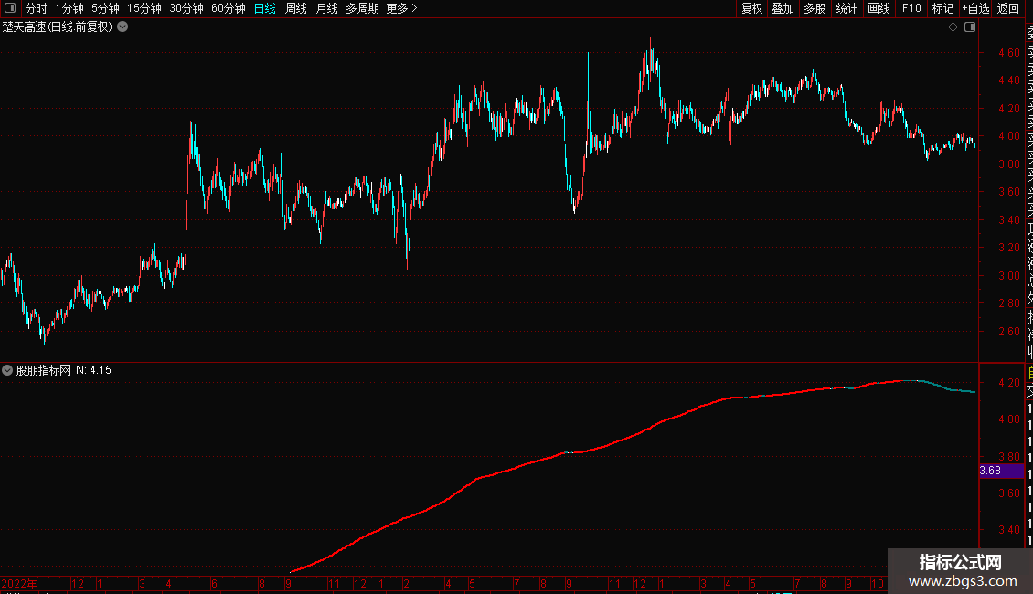 NOTEXTQ:IF(N>=REF(N,1),N,DRAWNULL)COLORRED LINETHICK2;{年线上行}