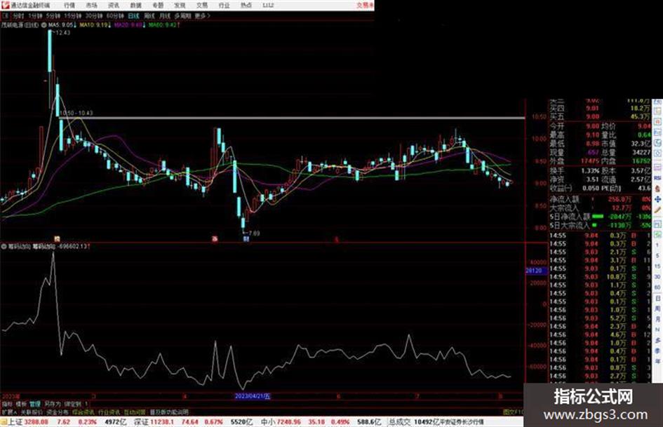 筹码动向:SUM(((CLOSE-LOW)-(HIGH-CLOSE))/(HIGH-LOW)*vol,0);