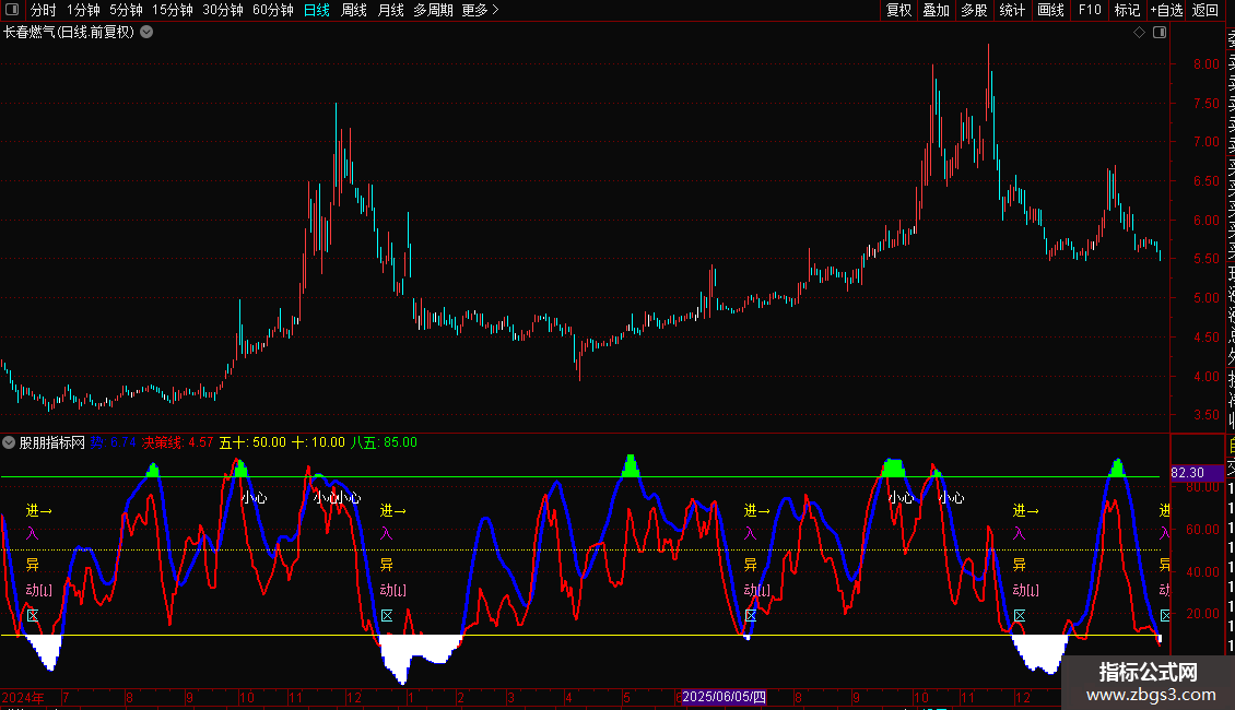 DRAWTEXT(CROSS(80,决策线),75,'小心')COLORWHITE;