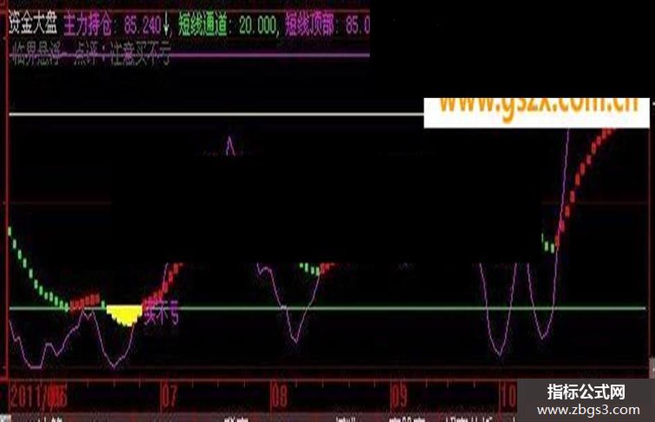 DRAWTEXT(CROSS(短线,短线通道) ,短线+1,'买不亏'),COLORFF00FF;