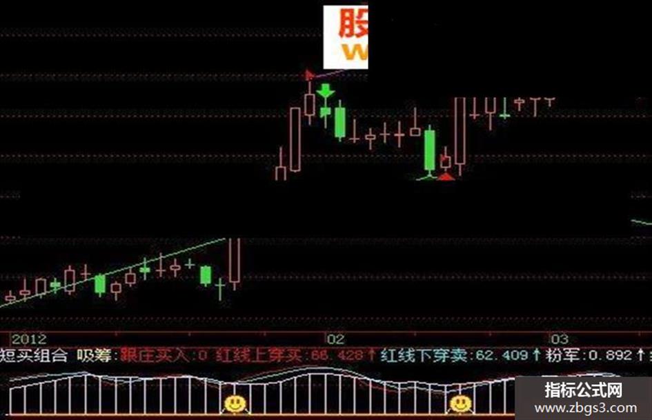 红线上穿买:EMA((VA-VB)/(VC-VB)*100,5),COLORRED;