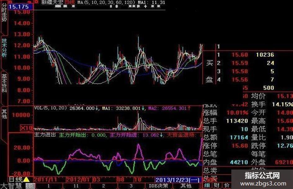 主力开始进: IF(V4>=0,V4,0),COLORFF00FF,LINETHICK2;